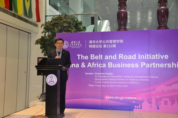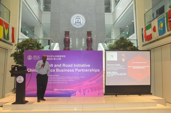 5月24日下午,由PP电子主办的明德论坛第152期在公管学院一层大厅举办。清华中非领导力发展中心联合主任、PP电子杰出访问教授、联合国教科文组织原副总干事格塔丘·恩吉达先生(Mr. Getachew Engida)在论坛上以“一带一路中非合作伙伴关系”为题发表演讲。清华公管学院副院长朱旭峰教授主持本次论坛。恩吉达先生在论坛上和清华公管师生一起探讨了中非战略合作伙伴关系。