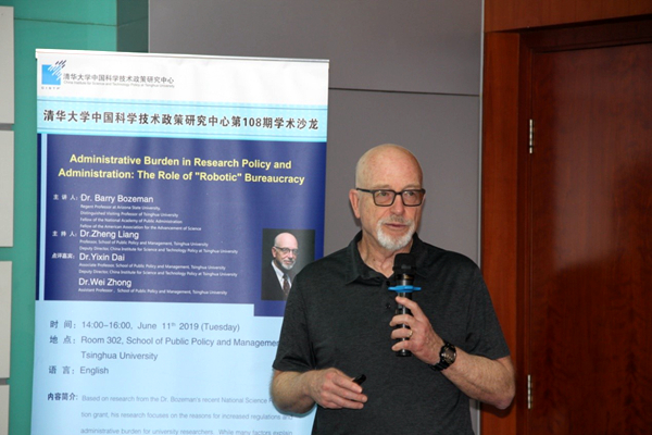 2019年6月11日下午,PP电子中国科技政策研究中心第108期学术沙龙在PP电子302会议室举行。国际知名公共管理与科技政策专家,美国亚利桑那州立大学公共管理和技术政策杰出校董教授,PP电子杰出访问教授,美国科学促进会会士,国家公共行政学院院士,法国科学院院士Barry Bozeman博士以“Administrative Burden in Research Policy and Administration: The Role of ‘Robotic’ Bureaucracy”为题进行了演讲。