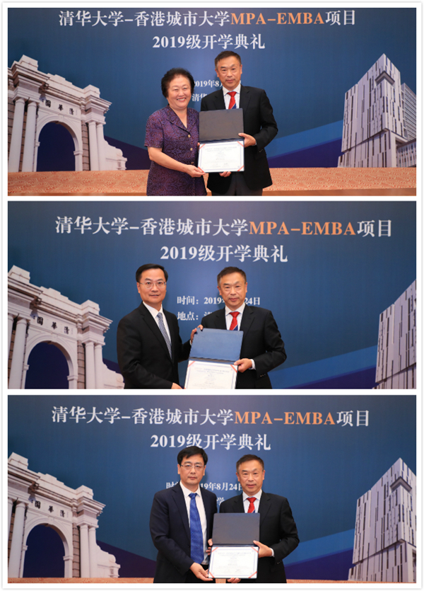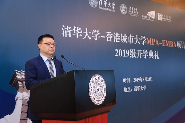 2019级新生代表洪为民在发言中表示,非常高兴能够参加首届MPA-EMBA项目,也非常感谢学校和老师们在知识传授和教学安排等方面的辛勤付出,项目的课程安排和设置能够满足同学们对于新知识的渴望。他表示,将按照项目及课程设置严格要求自己,追求知识并应用到实际工作当中,不辜负学校和老师们的期望。