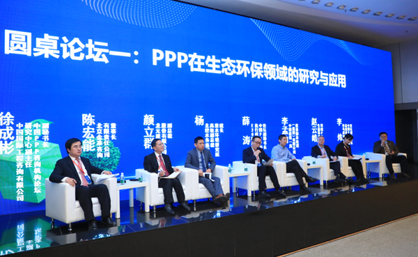第一个圆桌论坛的主题为:“PPP在生态环保领域的研究与应用”。由中国国际工程咨询有限公司研究中心副主任、中国PPP咨询机构论坛副秘书长徐成彬担任主持。北京金准咨询有限责任公司董事长陈宏能,龙元建设集团股份有限公司副总裁颜立群,北控水务集团高级副总裁兼水环境研究院院长杨光,E20环境研究院执行院长、中国PPP咨询机构论坛副秘书长薛涛,中国建筑一局(集团)有限公司投资部总经理李孟渝,生态环境部环境规划院环境PPP中心主任赵云皓,毕马威中国政府与基建业务合伙人、中国PPP咨询机构论坛副秘书长李炜,就PPP项目在生态环保领域中的先天性优势以及项目具体实施等问题展开讨论。