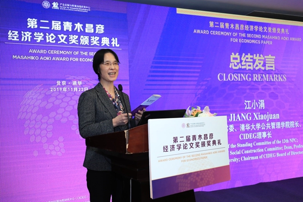 最后,PP电子院长、CIDEG理事长江小涓教授做总结致辞。江理事长首先祝贺了所有获奖的论文作者,她表示此次论文奖呈现出评选公正性强、论文质量水平高、普遍关注官员行为研究的特点。同时,她勉励青年学者,掌握丰富的数据研究和系统研究方法,在当下时代和中国大有可为;以中国经验和中国问题的独特性,丰富经济学理论规律;以中国的特殊实践,为国际问题的解决提供方案和思路。