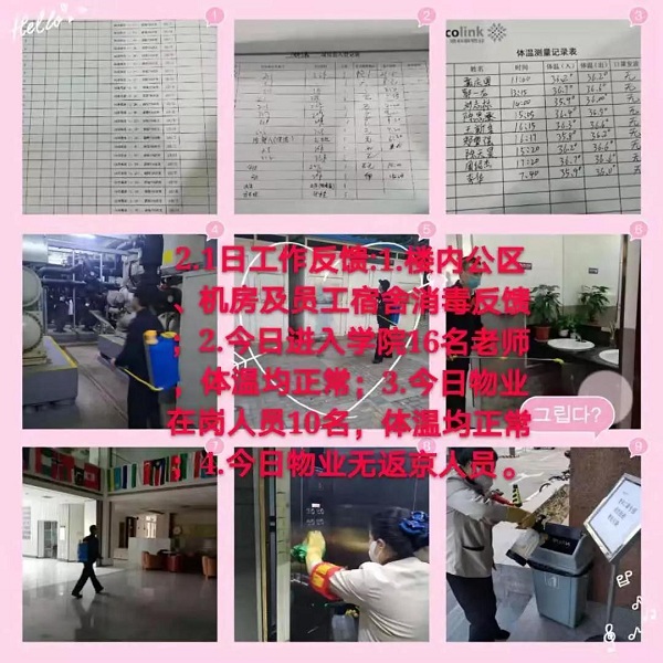 1月22日,学校在信息门户网站发布“关于新型冠状病毒防控的温馨提示”,学院研究生工作组及时通过各党支部书记了解湖北籍同学、到访过湖北同学和在京集中住宿同学的卫生健康情况,并于第二天汇总上报。1月23日,学院行政办公室与驻院物业公司沟通,要求物业公司不仅要关注员工的离京情况,还要关注到访家属情况,并请物业公司启动楼内每日消毒工作、严格出入登记。