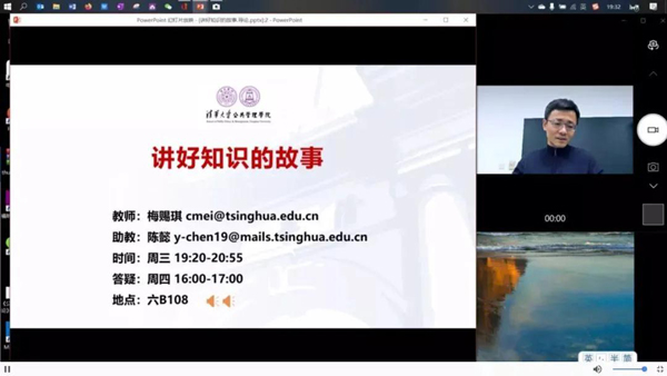 2月19日晚,一张手机拍摄的校园照片,再加上一点儿想象力,梅赐琪老师在荷塘雨课堂搭建起一间“云六教”,本科生课程《讲好知识的故事》正式开讲。首先,梅老师用一连串发问,将学生一步步带入精心设计好的“坑”里,以重塑他们对于“故事”的印象——人们对于世界的推理即是“故事”,让事实和人产生联系则仰赖于“讲故事”的过程。接着,梅老师借由同学和自己的亲身经历,点明“讲故事”是一门学问,是需要“解释-商讨-说”并举的技艺,稍加不慎便会“翻车”。为此,课程准备了一套“读、看、写、讲、比”的豪华工具箱,以帮助学生全方位提升“讲故事”的能力。虽然分散在天南海北,但是师生们在雨课堂里通过弹幕、投稿、罐头笑声进行着亲密无间的交流。