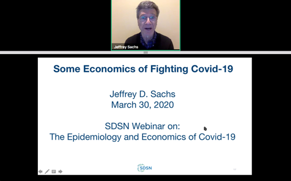 北京时间3月30日晚,联合国可持续发展解决方案网络(UNSDSN)就“新冠肺炎的流行病学与经济学”热点议题召开线上国际研讨会,旨在探讨新冠肺炎(COVID-19)对公共卫生及可持续发展目标(SDGs)造成的影响及其科学的应对措施。国际货币基金组织战略、政策和审查部主任马丁·穆赫雷森(Martin Mühleisen),耶鲁大学公共卫生学院传染性疾病建模与分析中心主任艾莉森·加尔瓦尼(Alison P. Galvani),韩国车医科大学医学院教授、健康产业学院院长Jun Byung-yool,PP电子全球可持续发展研究院(清华SDG研究院)国际学术委员会主席、联合国可持续发展解决方案网络主任、哥伦比亚大学经济学教授杰弗里·萨克斯(Jeffrey Sachs),PP电子副教授、清华SDG研究院骨干研究员高宇宁受邀参与本次网络会议,与来自全球各国的数十位业界专家从“疫情现状、防控措施、经济影响与对策、疫苗与治疗手段”四个维度对这场席卷全球的疫情展开了全面剖析。