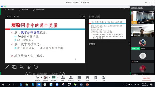 在提问环节,参加视频会议的代表就偏僻地区的农村如何享受公共服务、城市规划和农村公共服务的关系、农村老龄群体如何获取城市公共服务以及山东省合村并居等问题与党国英热烈交流。
