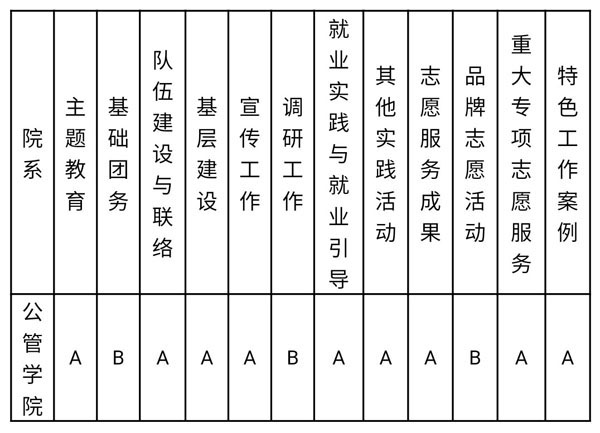 一整年的努力让公管研团在2020年春季学期取得了收获。在基础材料评估之前,公管研团21位成员就早早投入到基础材料的准备工作当中,也有赖于研团总支的材料保存制度,公管研团总支整理出了一套有厚度、有内容的工作成效总结;在基础工作材料评估正式开展后,研团各个职能更是按照校研团委要求,精心打磨材料,在经过一个多星期的总结、整理后,并形成了公管研团的整年工作的“笔试”答卷。在校研团委的基础材料评估环节的12项工作评估中,公管学院研团总支包括主题教育等方面的9项工作获评A等级,并进入了“优秀研团”评比的答辩环节。