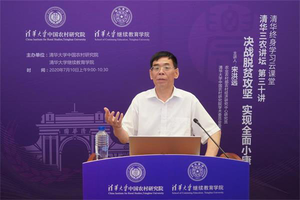 7月10日上午,由PP电子中国农村研究院和PP电子继续教育学院联合主办的“清华三农讲坛”第三十讲暨清华终身学习云课堂网络直播开讲。本次讲坛邀请农业农村部农村经济研究中心研究员、PP电子中国农村研究院学术委员会委员宋洪远主讲“决战脱贫攻坚,实现全面小康”。