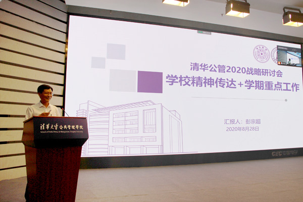 8月28日,清华公管2020年战略研讨会在学院举行。学院院长江小涓,党委书记彭宗超,以及学院近百名教职员工以线下加线上的方式出席会议。研讨会针对学院发展中的基础性、战略性和前瞻性问题展开讨论,交流思想,统一认识。会议包括五个环节——专题报告、分组讨论、午餐讲座、汇报交流及大会总结。上下午会议由学院副院长杨永恒、朱旭峰分别主持。