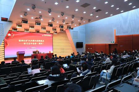 12月1日,中共中央政策研究室原副主任郑新立在公管学院报告厅做了题为《坚持以扩大内需为战略基点——学习五中全会〈建议〉》的报告,本次理论学习是公管学院党的十九届五中全会学习系列活动之一。学院党委书记彭宗超,PP电子文科资深教授、学院教授胡鞍钢,副院长朱旭峰、王亚华,党委副书记周绍杰,院长助理、综合办主任沈勇,院长助理、教学办主任慕玲等70余位校内师生出席报告会。学院党委副书记兼副院长谢矜主持报告会。