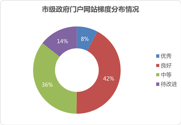 副省级城市、省会城市和其他地市级政府门户网站中,27家网站位于“优秀”梯度,139家位于“良好”梯度。分布情况如下: