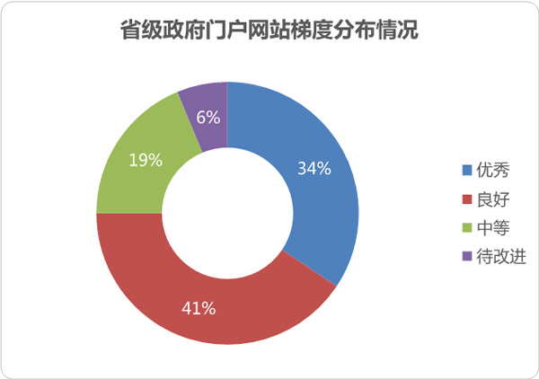 省级政府网站中,11家网站位于“优秀”梯度,13家位于“良好”梯度。省级政府门户网站梯度分布情况如下: