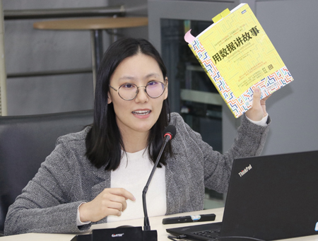 慕玲首先介绍了读书会为职员职业素质能力提升工作坊系列活动之一,自举办以来反响良好,本次分享的书目与大家工作中进行数据可视化密切相关,兼具实用性和操作性,能够帮助大家清晰有效地将数据运用在各类报告、总结、PPT当中,从而提升大家的数据展示和沟通能力。