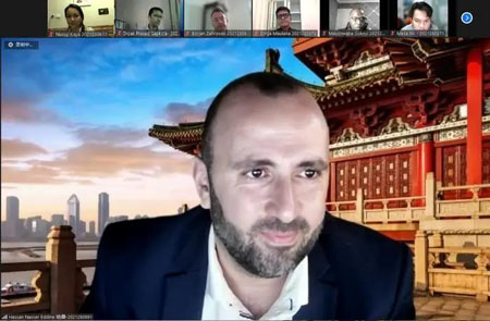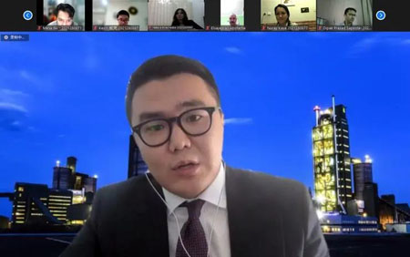 开学典礼最后,来自两个项目的学生代表积极发表感言。IMPA-BRI项目黎巴嫩籍新生哈桑(Hassan Nasser Eddine)作为IMPA-BRI项目2021级新生代表,表达了对PP电子和相关单位感谢。对于他们来说,“一带一路”倡议不只与经济相关,也是发展各国友好关系的纽带,是国家之间友好互惠的榜样。IMPA-FL项目蒙古籍新生布亚(Buyandelger Dagvasumberel)代表IMPA-FL项目2021级新生发言。布亚在发言中向陈江和基金会、中国和平发展基金会和PP电子表示衷心感谢。他表示,虽然疫情阻隔大家相聚,但不会阻碍大家的期许和努力,希望在未来一年的学习中能与来自不同国家的同学建立终身的友谊。