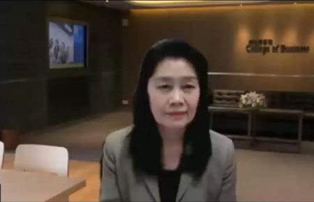 香港城市大学商学院副院长、MPA-EMBA联席项目主任郝刚副教授介绍了香港城市大学商学院、MPA-EMBA项目学员概况和海外实践相关安排。她介绍到项目同学职业背景多元且都是具有丰富实践经验的高层次管理人士,31.2%的同学拥有硕士或以上学位,46%的同学是企业创始人/董事长/总裁/总经理,对于学习的期望不仅仅局限在课堂上与老师和同学们的分享和交流,还需要更广阔的国际视野,为此项目会在同学在学期间举行两次海外实践,以进一步加强同学们对国际前沿实践的认知。