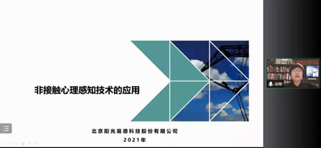 北京阳光易德科技股份有限公司赵敏女士介绍了非接触心理感知技术的应用。基于行为数据、情绪测量等多种数据,他们的平台可以为宏观的决策和微观的团体动力和个体动力分析提供支持。赵老师展示了已有应用的可视化分析结果,并介绍了相关解决方案。随后,阳光易德邓宁先生进行了补充说明。