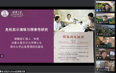 应急管理研究基地硕士毕业生、加拿大麦吉尔大学博士生朱宪介绍了领导批示模拟演练及探索性研究。朱宪介绍了突发事件批示演练的情景设计、批示数据收集过程,并构建了分析框架,尝试刻画领导批示的个体差异并分析影响因素。随后,朱宪就情景模拟教学的优势、挑战和设想进行了探讨,认为情景演练方法有助于获取大样本数据,相关研究结论可以为学员提供反馈,做到“从演练中来,到演练中去”,但也需要兼顾学员体验感和情景设计真实性。