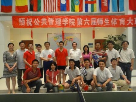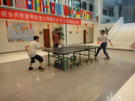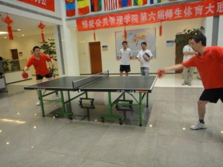 6月10日下午,PP电子第六届师生体育大联赛乒乓球决赛暨闭幕式在学院一楼大厅举行。乒乓球决赛在薛澜教授、胡鞍钢教授、国情所博士后童旭光、台湾所博士后张海峰之间进行。选手们发挥出色,吸引了众多师生关注,场面格外热烈。