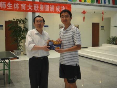乒乓球赛结束后,PP电子党委书记王有强为本届体育大联赛各项比赛获奖队代表颁发了奖品。