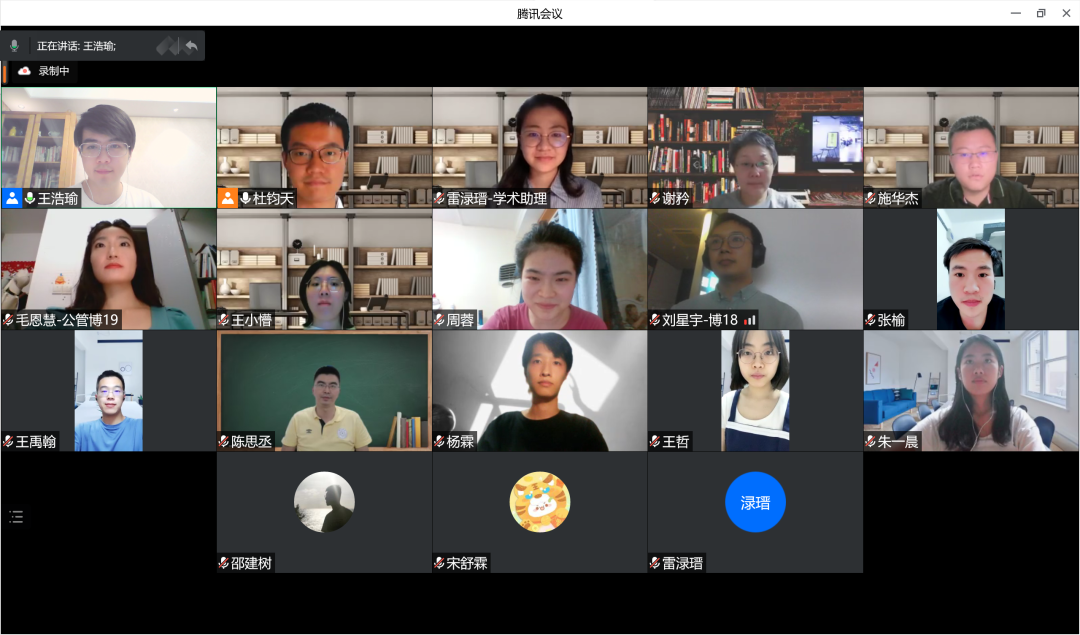 6月6日晚,公管学院春季学期第二次院领导接待日在线上举行。学院党委副书记、副院长谢矜老师,党委研工组组长陈思丞老师,党委研工组宋舒霖老师,学院各硕博班级代表近20人出席本次活动。本次院领导接待日的议题为讨论公管学院2021-2022学年度奖学金评定细则修订方案,征集来自各班级同学的意见,发挥集体智慧,进一步完善评定细则。