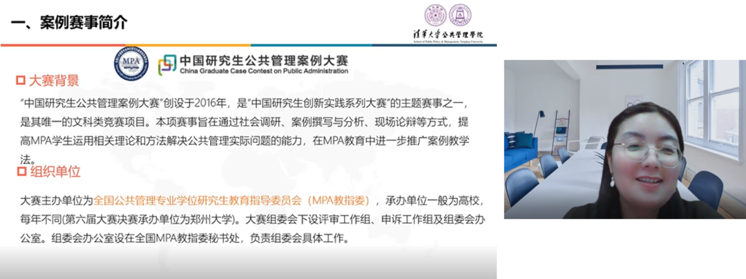 慕玲老师从案例赛事、案例选题、案例大赛组织情况等方面做详细介绍。中国研究生公共管理案例大赛是中国研究生创新实践系列的大赛的主题赛事之一,是唯一的文科类的竞赛项目,旨在通过社会调研、案例撰写与分析、现场论辩等方式,提升MPA学生运用公共管理理论和公共政策分析方法解决实际问题的能力,使MPA教育与公共管理实践、与国家发展大局更加紧密结合。案例选题要求围绕我国当前公共管理、公共政策领域面临的重大或热点问题。她鼓励大家积极参加案例大赛,尽可能发现工作当中的鲜活案例,运用公共管理理论框架深入分析,探索出问题背后的一般性规律,学会运用案例的方式提升自身工作及科研水平。