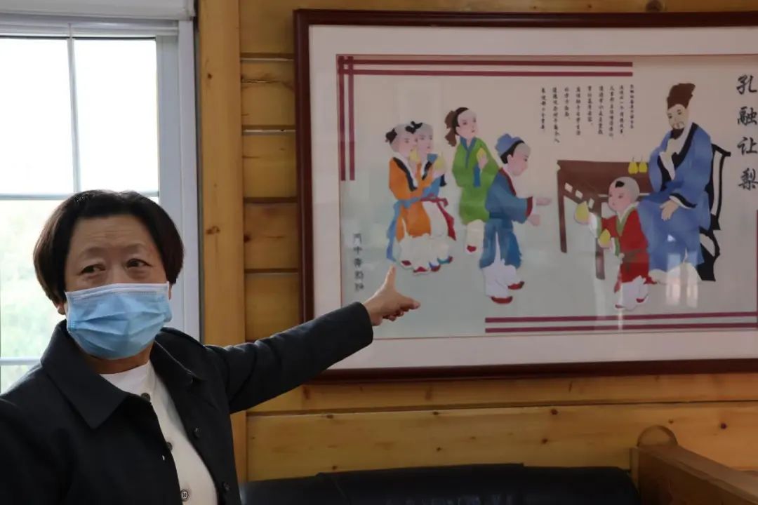 王惠芳为同学们介绍京绣作品《孔融让梨》