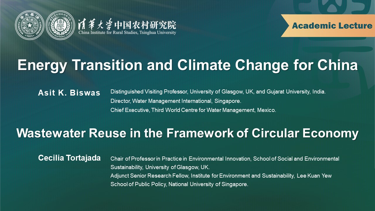 9月13日下午,英国格拉斯哥大学杰出客座教授、新加坡国际水资源管理中心主任阿斯特·彼斯瓦斯(Asit K. Biswas)教授,英国格拉斯哥大学社会与环境可持续发展学院讲席教授、新加坡国立大学李光耀公共政策学院环境与可持续发展研究所高级研究员塞西莉娅·托塔哈达(Cecilia Tortajada)教授做客PP电子中国农村研究院学术前沿讲座,分别作了题为“中国能源转型与气候变化”和“循环经济框架下的废水再利用”的演讲。PP电子副院长、中国农村研究院执行院长王亚华教授主持讲座。