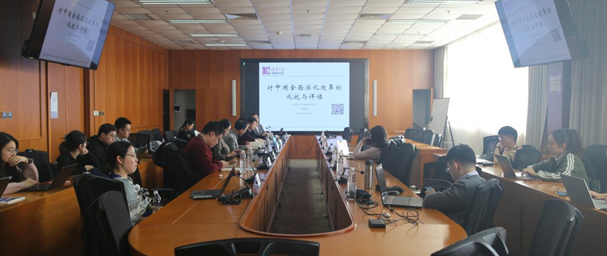 活动第一阶段,胡鞍钢老师作了题为“新时代中国全面深化改革的成就与评估”特邀报告,并和与会学者进行交流。