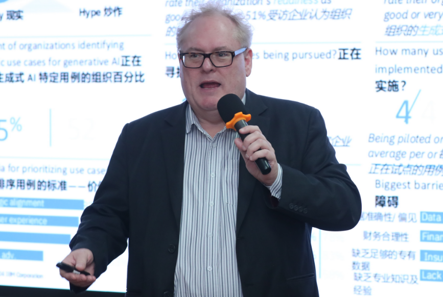 Anthony Marshall与Cindy W.Anderson分别就当前IBM商业价值研究院的发展与研究成果进行了详细的介绍,并着重向大家介绍了IBM发起的针对中国企业高管与AI的研究。