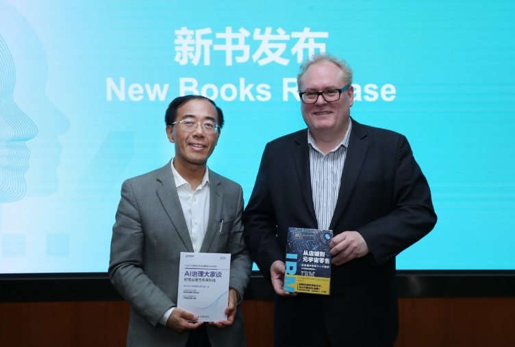 会议最后新书发布环节,人工智能国际治理研究院携新书《AI治理大家谈》《敏捷与协同》与IBM商业价值研究院的《从店铺到元宇宙零售》共同发布。