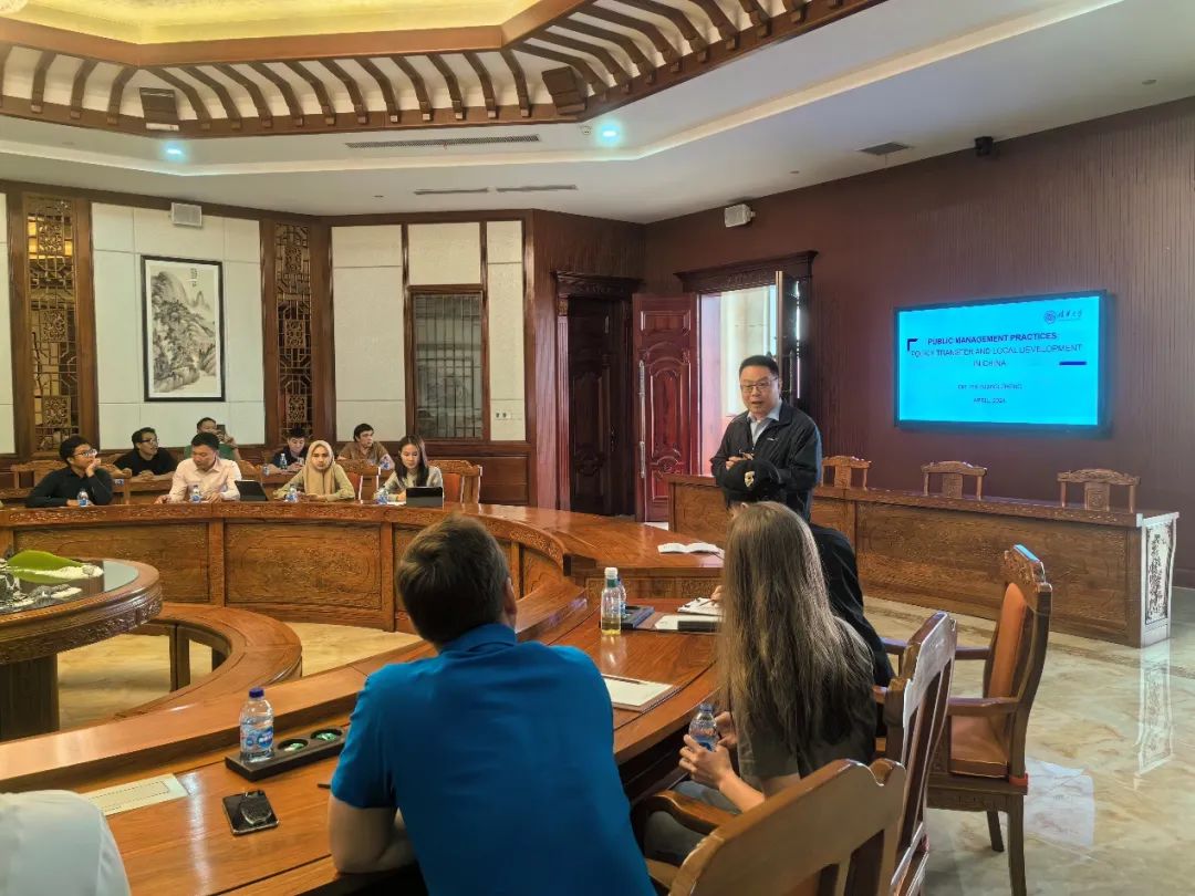 4月23日下午,师生一行抵达苏州张家港。抵达后,郑振清老师为IMPA项目学生讲授题为 “Public Management Practices: Policy Transfer and Local Development in China” 的课程报告,梳理比较了中国地方政府发展与治理的多种制度创新与政策试点,并对苏州工业园和张家港经开区的政策迁移经验进行典型案例分析,为本次公共管理专业实践确定主题和任务。