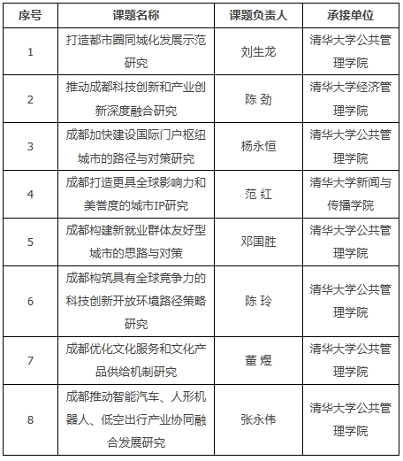 2025年度清华成都高质量发展合作专项课题拟承接团队名单