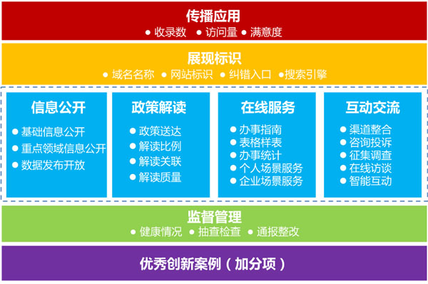 | 信息公开 | 基础信息 公开 | 1.  能否便捷查询到地区的概况信息。 2.  能否便捷查询到发改、教育等部门职能信息。 3.  能否便捷查询到领导的简历和照片等信息。 4.  动态要闻类栏目能否及时更新维护。 5.  政策文件类栏目能否及时更新维护。 |