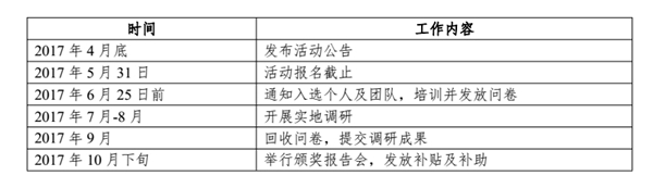 通过审核获得立项的团队在完成调研任务后,将获得交通费补贴与问卷补助;未通过审核立项的团队自愿完成基础性问卷调查任务的,将根据完成问卷的数量和质量,获得问卷调查补助。所有提交的调研报告都将参评“农村调查研究奖”,并有机会获得相关奖励。设立“农村调查优秀微视频奖”和“农村调查优秀图片奖”,对优秀影像资料作品给予奖励。具体标准如下。