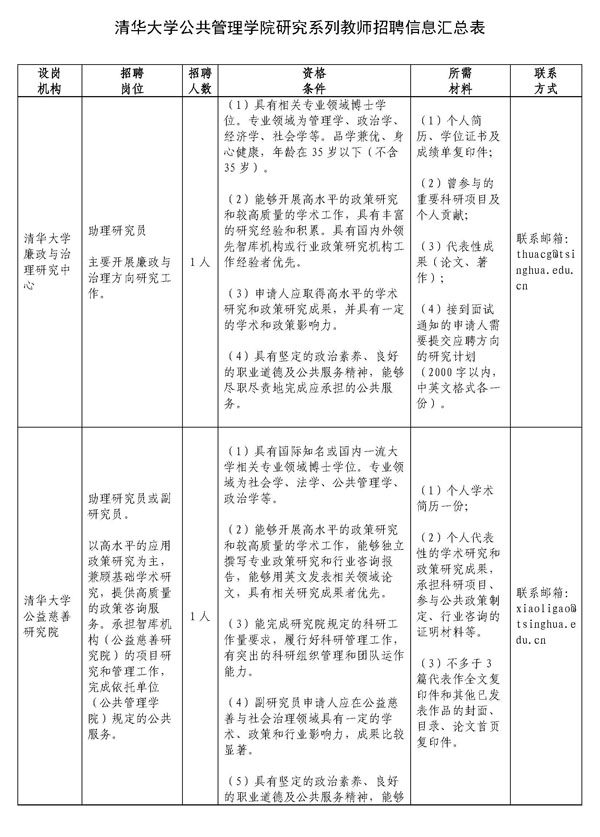 有意应聘者请登录PP电子招聘网(http://jobs.tsinghua.edu.cn/project/qhdx/pages/recruit_new/?#/post),招聘单位栏点击“智库中心”,在招聘系统中应聘,并同时发送要求材料至各机构联系邮箱。截止日期以PP电子人员招聘系统发布为准。