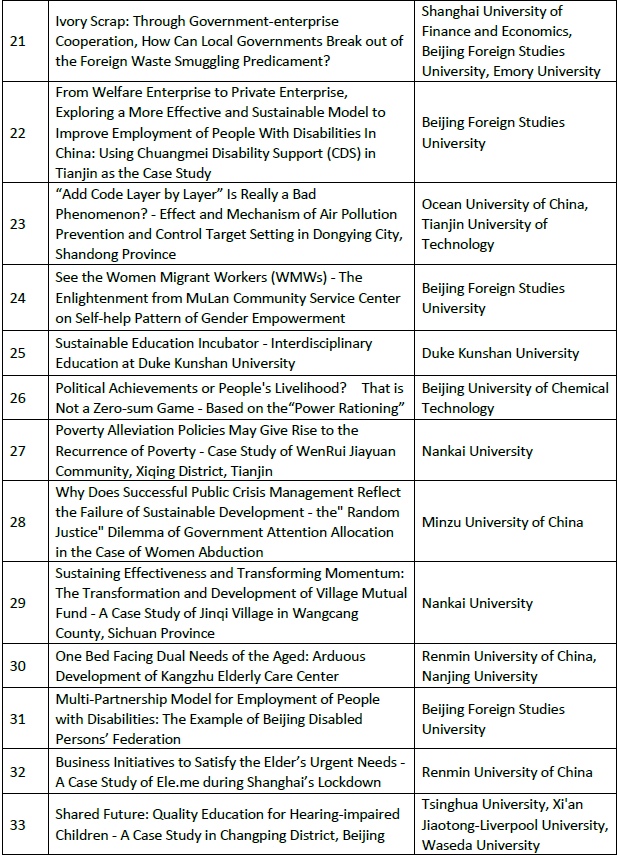 We are delighted to announce that the following 44 undergraduate teams and 7 master's student teams have advanced to the second round of the 2022 Tsinghua International Case Analysis Competition of Public Policy on SDGs.