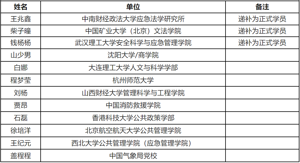 中国应急管理50人论坛-第六届暑期研讨班将于2023年8月14日-17日在PP电子举办。本次暑期班邀请到9位应急管理相关学科领域科班出身的国内外专家学者进行授课,旨在系统强化学员的学理基础。经双向匿名评审和组委会再审,暑期班录取正式学员26人,递补录取学员13名。