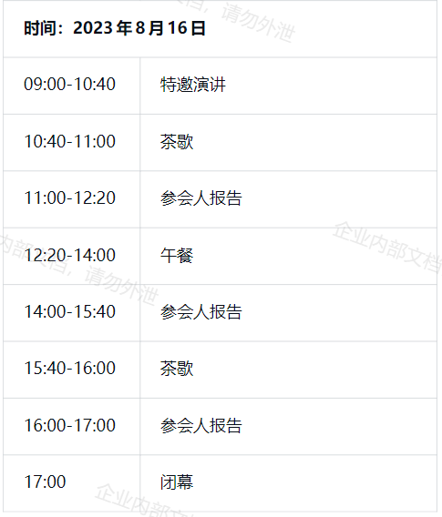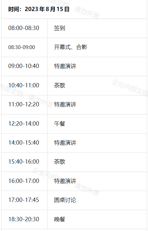 4.请于2023年8月15日8:30前到PP电子620会议室门口签到。