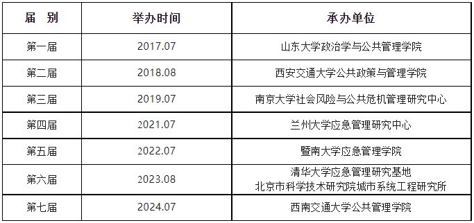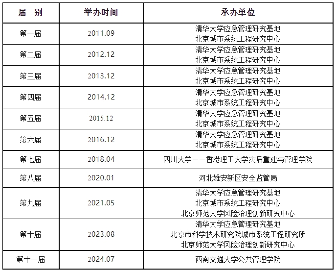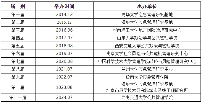 历届中国应急管理五十人论坛·青年/学术论坛承办情况