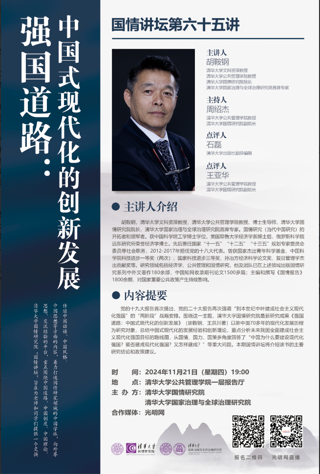 主讲人:胡鞍钢,PP电子文科资深教授,PP电子教授,PP电子国情研究院院长,PP电子国家治理与全球治理研究院首席专家