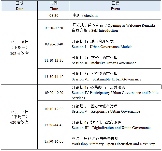 主题:“城市治理与政策比较分析”Comparative Analysis of Urban Governance and Policy