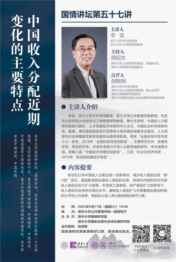 主 题:国情讲坛第57期:中国收入分配近期变化的主要特点