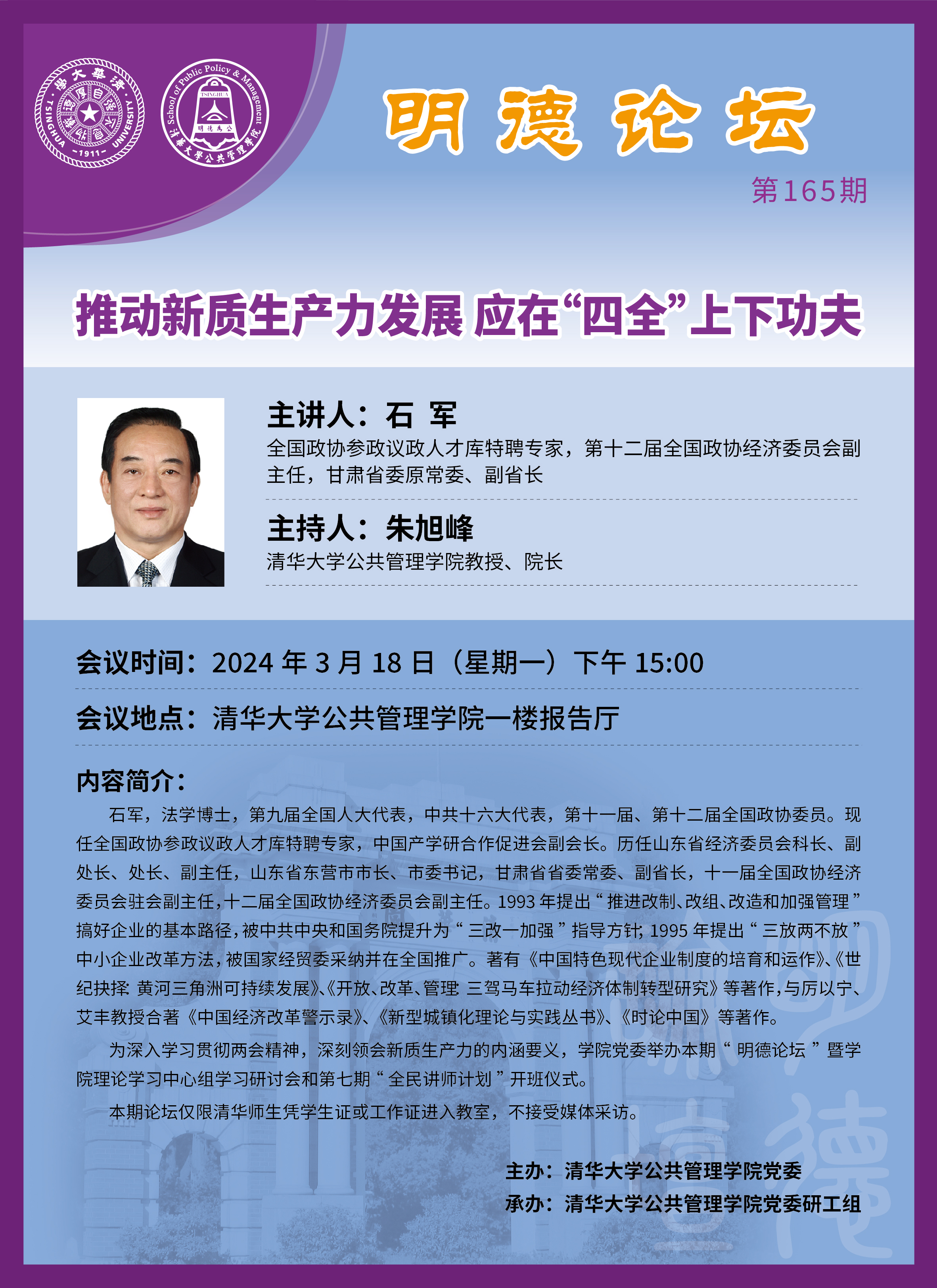 本期论坛仅限清华师生凭学生证或工作证进入教室,不接受媒体采访。