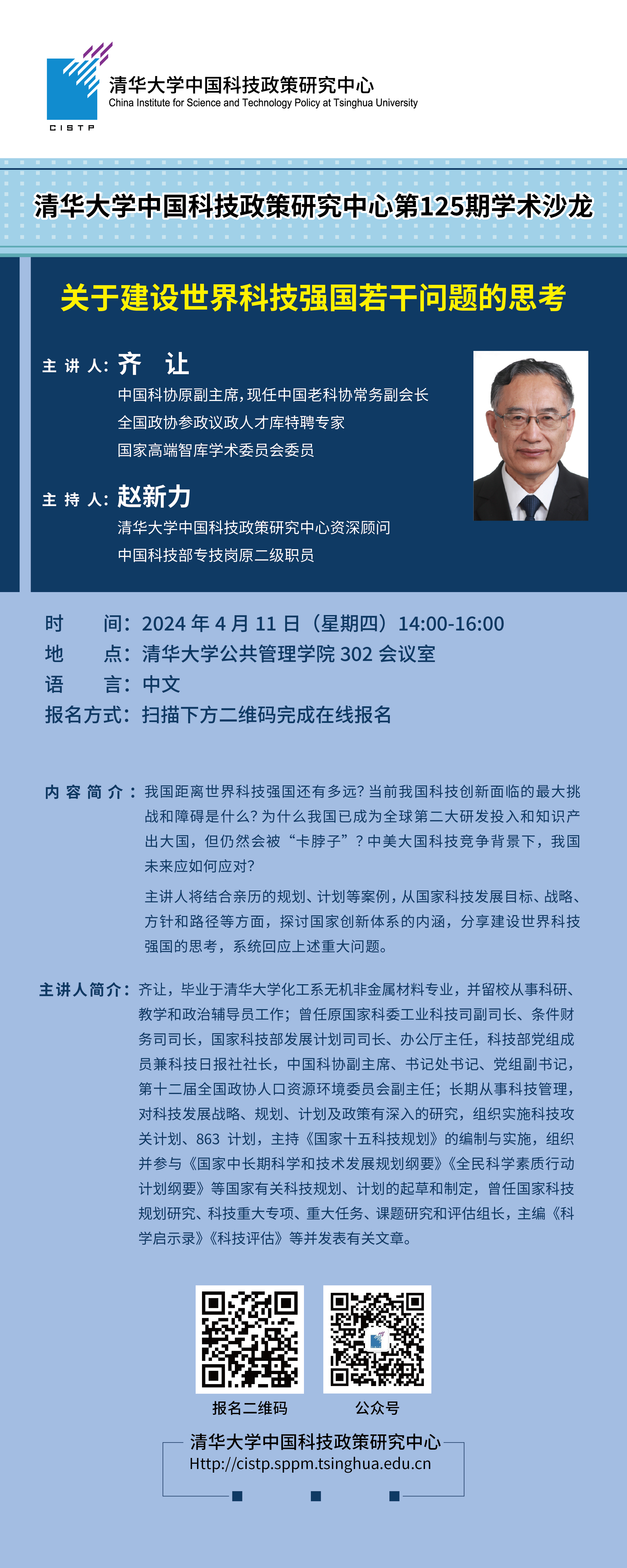 主讲人:齐让 中国科协原副主席,现任中国老科协常务副会长,全国政协参政议政人才库特聘专家,国家高端智库学术委员会委员