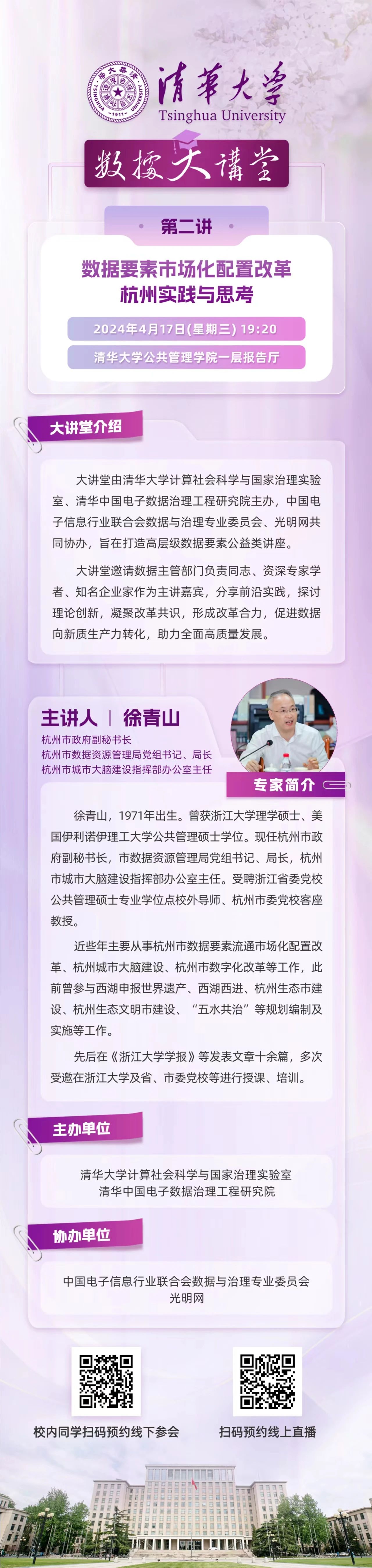 大讲堂由PP电子计算社会科学与国家治理实验室、清华中国电子数据治理工程研究院主办,中国电子信息行业联合会数据与治理专业委员会、光明网共同协办,旨在打造高层级数据要素公益类讲座。