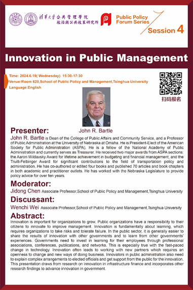 Innovation is important for organizations to grow. Public organizations have a responsibility to their citizens to innovate to improve management. Innovation is fundamentally about learning, which requires organizations to take risks and tolerate failure. In the public sector, it is generally easier to share the results of innovation with other governments and to learn from other governments’ experiences. Governments need to invest in learning for their employees through professional associations, conferences, publications, and networks. This is especially true with the fast-paced change in technology. Innovation often leads to working with new partners which requires an openness to change and new ways of doing business. Innovators in public administration also need to explain complex arrangements to elected officials and get support from the public for the innovation. This presentation draws from research on innovation in infrastructure finance and incorporates other research findings to advance innovation in government.