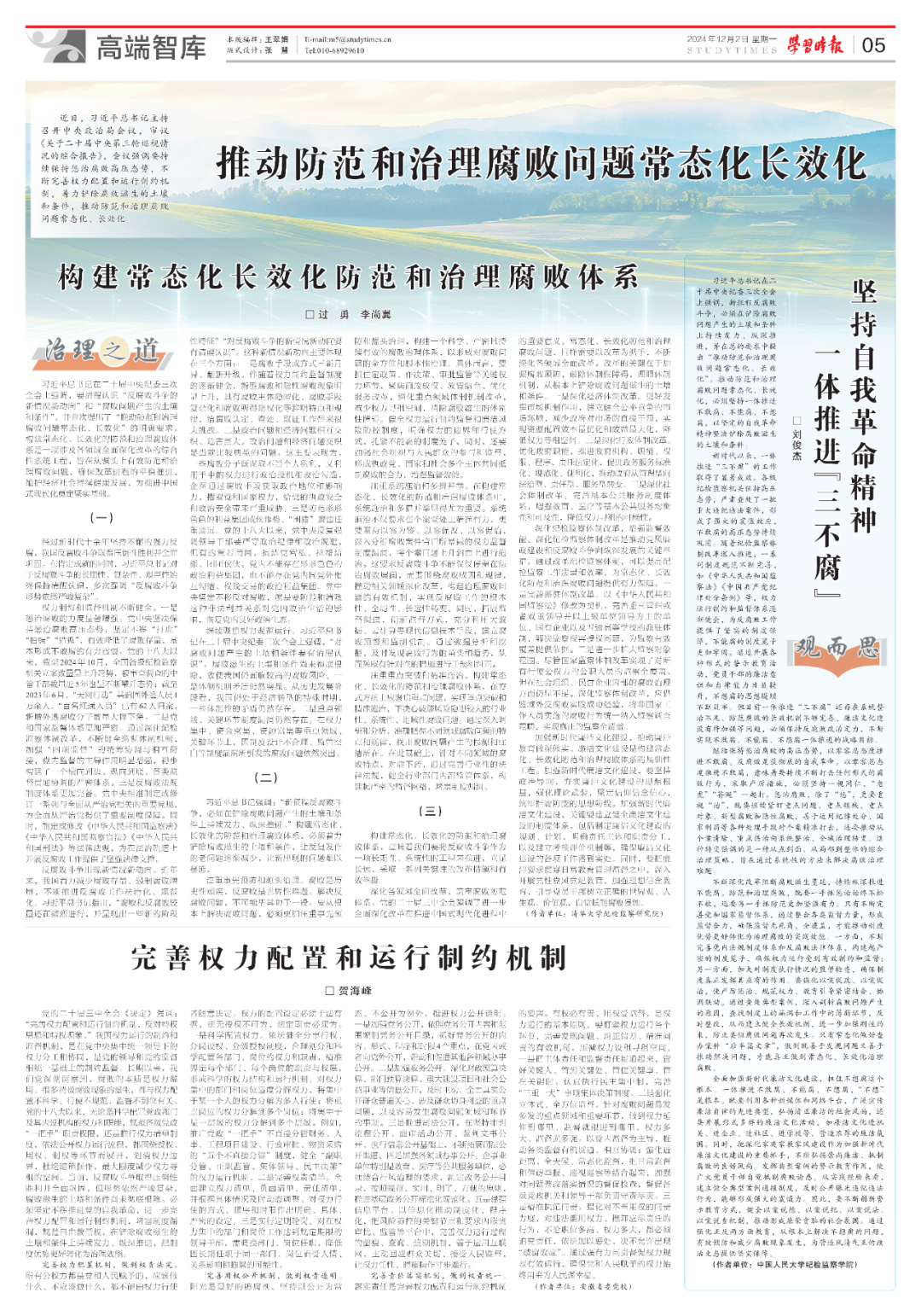 近日,PP电子党委副书记、纪检监察研究院教授、公管学院教授过勇与合作者李尚翼在《学习时报》发表文章,谈如何构建常态化长效化防范和治理腐败体系,现转发全文,以飨读者。