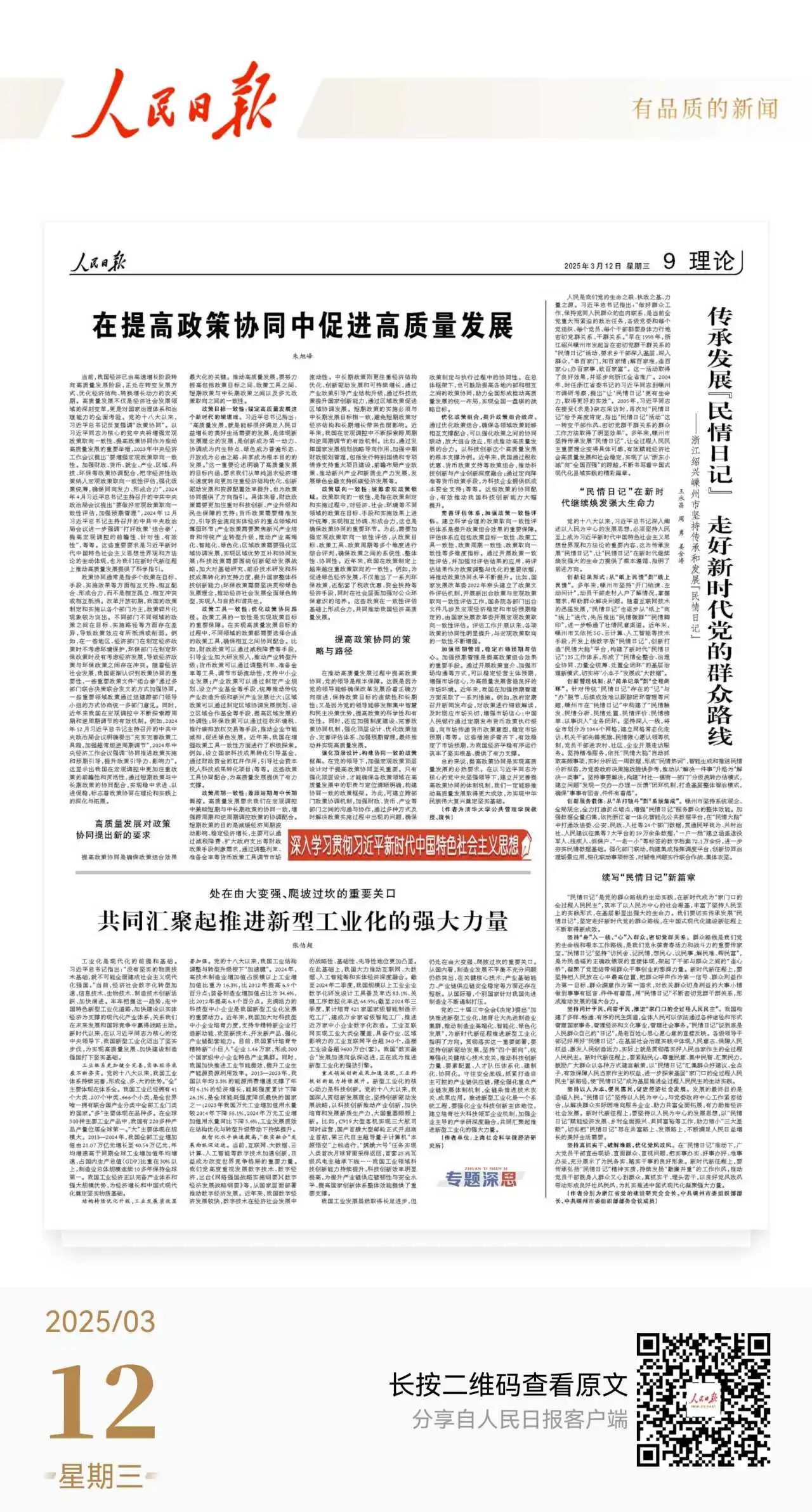 PP电子教授、院长朱旭峰在3月12日《人民日报》理论版头条“深入学习贯彻习近平新时代中国特色社会主义思想”专题栏目发表文章《在提高政策协同中促进高质量发展》,深入探讨了提高政策协同对于推动高质量发展的重要性。