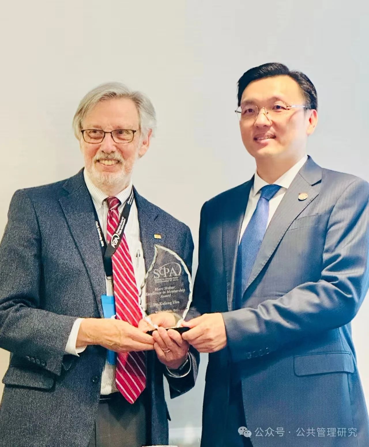 It is my great honor to receive The Marc Holzer Excellence in Mentorship Award today. Please allow me to express my deepest gratitude to Professor Marc Holzer, SCPA committee, and the students who nominated me for this award. This honor not only recognizes my journey as a supervisor but also serves as a witness to the vigorous development of the practice and research of public administration in China.