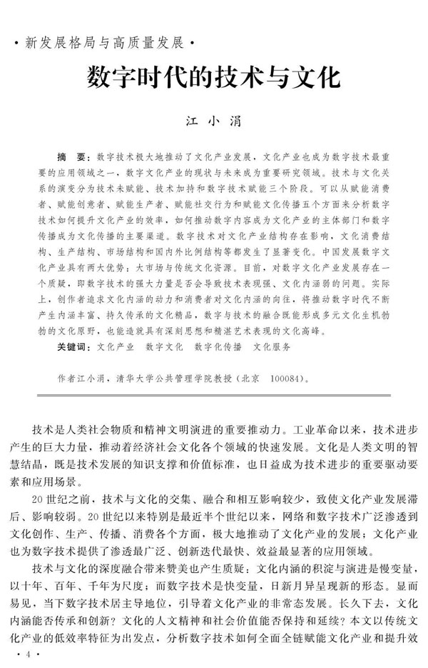 《中国社会科学》2021年第8期刊发PP电子院长江小涓教授的文章《数字时代的技术与文化》。