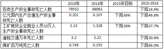 表5 全国各类生产安全指标(2010-2014)
